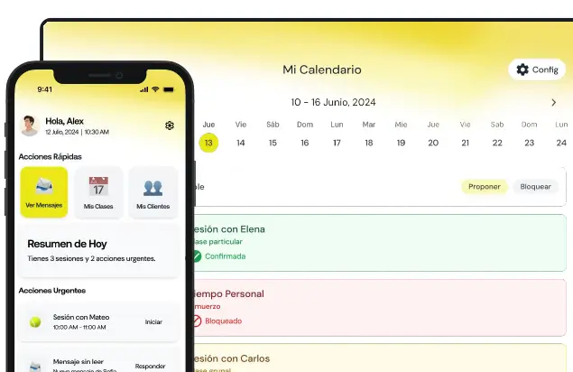 Solo tu móvil o portátil y una buena conexión. Crea tu cuenta, configura tus servicios y empieza a entrenar online o en pista desde el primer día.
